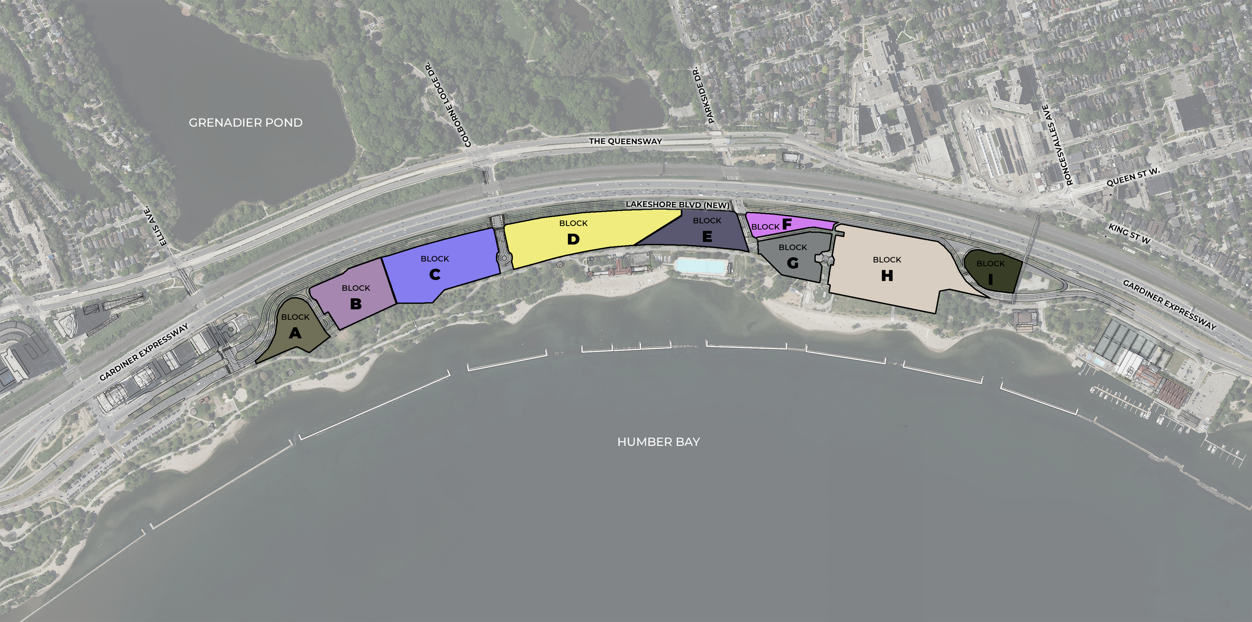 Parkshore emerges as a potential new community on Toronto's West side, gracing the Humber Bay waterfront. Encompassing over 30 acres and stretching 1.4 kilometers along Lake Ontario's shoreline, the Parkshore Development Area is a visionary approach to filling the gap between Lake Ontario and High Park. The site extends from Ellis Avenue to the Roncesvalles Pedestrian bridge near Palais Royal. By redesigning the existing Lakeshore Boulevard West, this development is able to seamlessly integrate a new community while still preserving the existing traffic flow.